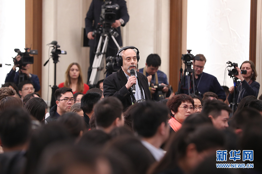 3月11日,十三屆全國人大一次會議新聞中心在人民大會堂一樓新聞發(fā)布廳舉行記者會,邀請十三屆全國人大一次會議秘書處法案組組長、全國人大常委會法工委主任沈春耀,法案組副組長、全國人大常委會法工委副主任鄭淑娜就“憲法修正案”相關問題回答中外記者提問。圖為美國全國公共廣播電臺記者提問。新華網(wǎng)/中國政府網(wǎng) 陳杰 攝