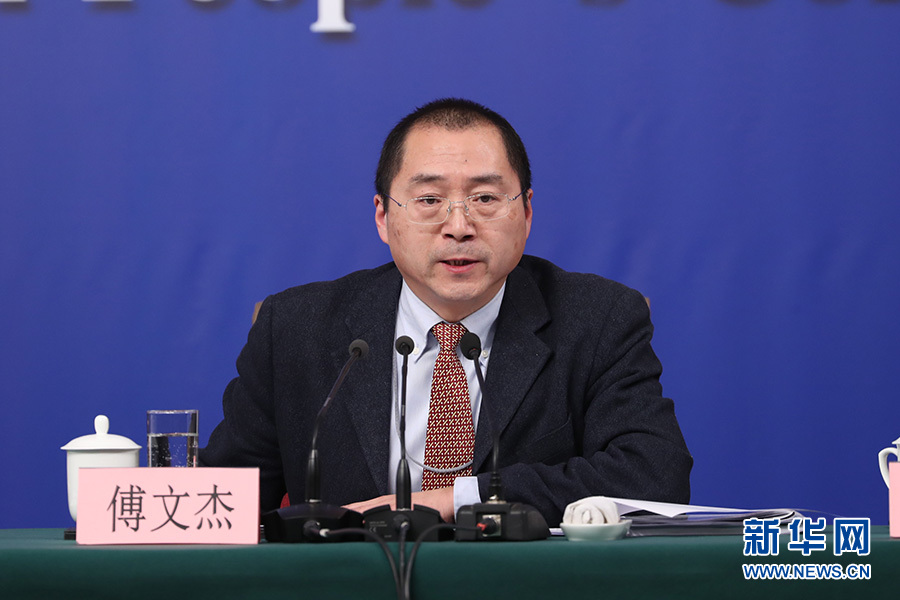 十三屆全國人大一次會議新聞中心于3月12日15時(shí)在梅地亞中心多功能廳舉行記者會,邀請十二屆全國人大財(cái)經(jīng)委副主任委員尹中卿、教科文衛(wèi)委副主任委員吳恒、環(huán)資委副主任委員袁駟、內(nèi)司委委員鄭功成,全國人大常委會預(yù)算工委副主任劉修文、常委會辦公廳秘書局巡視員傅文杰就“人大監(jiān)督工作”相關(guān)問題回答中外記者提問。圖為常委會辦公廳秘書局巡視員傅文杰回答記者提問。新華網(wǎng)/中國政府網(wǎng) 陳杰 攝
