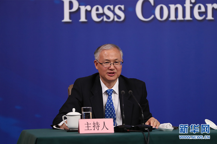 3月12日,十三屆全國人大一次會(huì)議新聞中心在梅地亞中心多功能廳舉行記者會(huì),邀請(qǐng)十二屆全國人大內(nèi)司委副主任委員王勝明、財(cái)經(jīng)委副主任委員烏日?qǐng)D、教科文衛(wèi)委副主任委員吳恒、環(huán)資委委員呂彩霞,全國人大常委會(huì)法工委副主任王超英、副主任許安標(biāo)就“人大立法工作”相關(guān)問題回答中外記者提問。圖為記者會(huì)主持人。新華網(wǎng)/中國政府網(wǎng) 翟子赫 攝