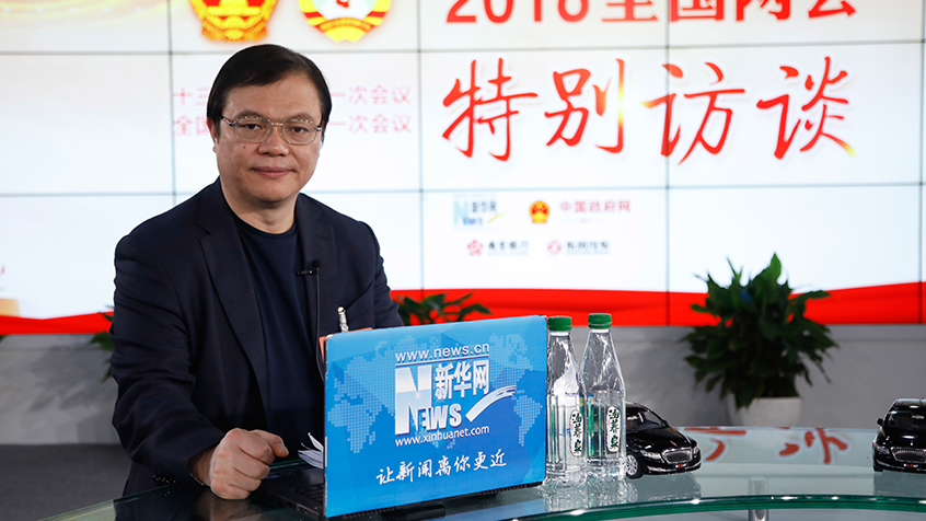 ??????? 全國人大代表、康恩貝集團有限公司董事長胡季強做客新華網2018全國兩會特別訪談 新華網 楊锘攝