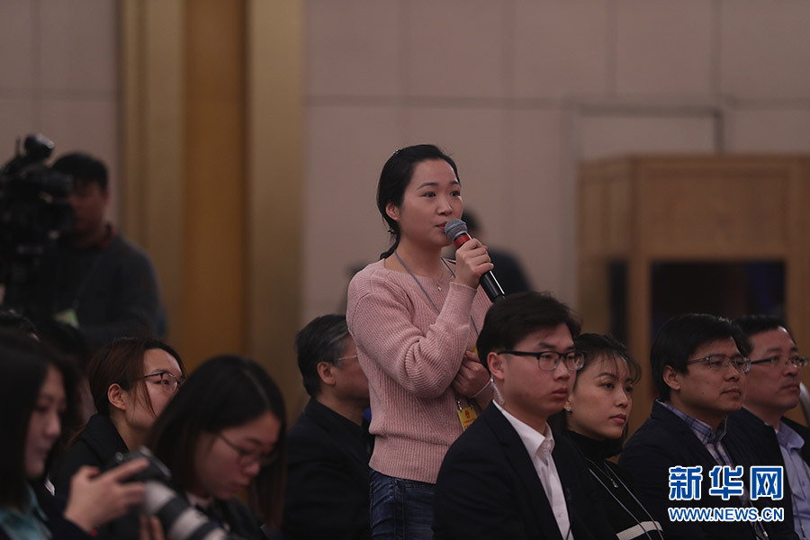 3月12日,十三屆全國人大一次會議新聞中心在梅地亞中心多功能廳舉行記者會,邀請十二屆全國人大內司委副主任委員王勝明、財經委副主任委員烏日圖、教科文衛委副主任委員吳恒、環資委委員呂彩霞,全國人大常委會法工委副主任王超英、副主任許安標就“人大立法工作”相關問題回答中外記者提問。圖為光明日報記者提問。新華網/中國政府網 翟子赫 攝