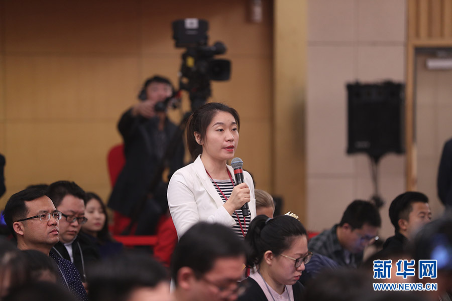 3月12日,十三屆全國人大一次會議新聞中心在梅地亞中心多功能廳舉行記者會,邀請十二屆全國人大內(nèi)司委副主任委員王勝明、財經(jīng)委副主任委員烏日圖、教科文衛(wèi)委副主任委員吳恒、環(huán)資委委員呂彩霞,全國人大常委會法工委副主任王超英、副主任許安標(biāo)就“人大立法工作”相關(guān)問題回答中外記者提問。圖為中央電視臺記者提問。新華網(wǎng)/中國政府網(wǎng) 翟子赫 攝