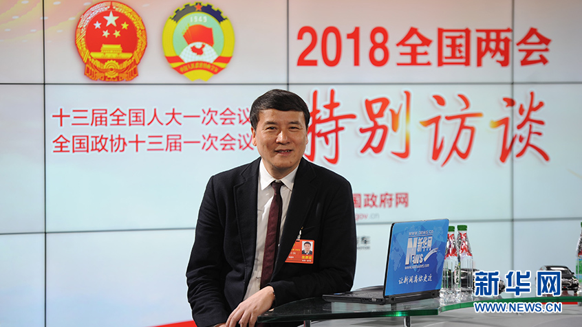 ??????? 圖為全國政協委員,中國文聯副主席、中國美術學院院長許江做客新華網2018全國兩會特別訪談。新華網 郭小天攝