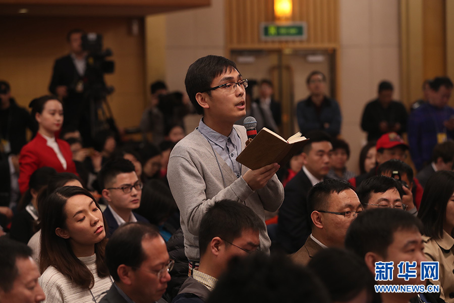 十三屆全國人大一次會(huì)議新聞中心于3月16日10時(shí)在梅地亞中心多功能廳舉行記者會(huì),邀請教育部部長陳寶生就“努力讓每個(gè)孩子都能享有公平而有質(zhì)量的教育”相關(guān)問題回答中外記者提問。圖為光明日報(bào)融媒體記者提問。新華網(wǎng)/中國政府網(wǎng) 曲植 攝