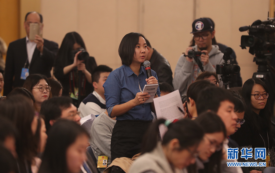 十三屆全國人大一次會議新聞中心于3月17日15時在梅地亞中心多功能廳舉行記者會,邀請環保部部長李干杰就“打好污染防治攻堅戰”相關問題回答中外記者提問。圖為中國日報社記者提問。新華網/中國政府網 曲植 攝?