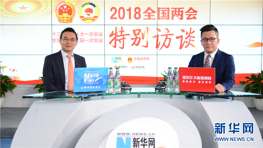 3月18日,全國人大代表、遠(yuǎn)景創(chuàng)始人兼CEO張雷(左)做客新華網(wǎng)2018全國兩會特別訪談。新華網(wǎng) 楊濛攝