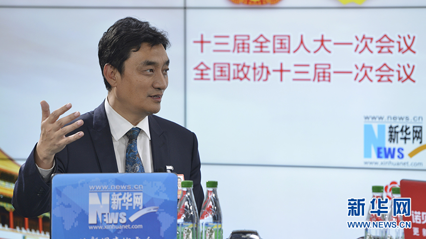 圖為18日,全國人大代表,云南省曲靖市委副書記、市長董保同做客新華網2018全國兩會特別訪談。新華網 李相博攝