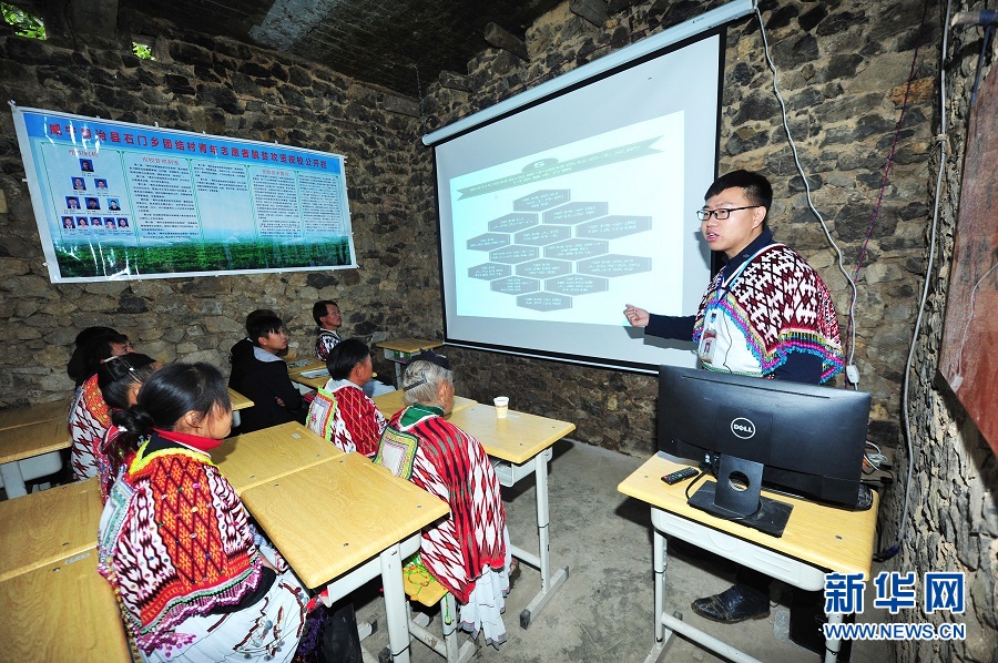 在貴州省畢節(jié)市威寧彝族回族苗族自治縣石門鄉(xiāng)團(tuán)結(jié)村七里沖組脫貧攻堅(jiān)講習(xí)點(diǎn),村支書胡鈞溥在向當(dāng)?shù)厝罕娭v解十九大精神及相關(guān)的扶貧政策(2017年10月23日攝)。逐夢(mèng)征程,需要價(jià)值追求的引領(lǐng)和精神力量的支撐。 “社會(huì)主義核心價(jià)值觀決定著各民族共有精神家園的發(fā)展方向,必須在各民族中大力培育和踐行”“以社會(huì)主義核心價(jià)值觀為引領(lǐng),深入挖掘優(yōu)秀傳統(tǒng)農(nóng)耕文化蘊(yùn)含的思想觀念、人文精神、道德規(guī)范”“引導(dǎo)全社會(huì)積極培育和踐行社會(huì)主義核心價(jià)值觀,樹立良好道德風(fēng)尚”……今年全國(guó)兩會(huì)期間,習(xí)近平總書記多次強(qiáng)調(diào)培育和踐行社會(huì)主義核心價(jià)值觀。兩會(huì)上,社會(huì)主義核心價(jià)值觀被寫入國(guó)家根本大法。浩渺行無極,揚(yáng)帆但信風(fēng)。兩會(huì)結(jié)束后,代表委員們奔赴大江南北,與各地干部群眾一起,以實(shí)際行動(dòng)推動(dòng)社會(huì)主義核心價(jià)值觀建設(shè)落細(xì)落小落實(shí),持續(xù)構(gòu)筑中國(guó)精神、中國(guó)價(jià)值、中國(guó)力量,為劈波斬浪的“中國(guó)號(hào)”巨輪揚(yáng)起團(tuán)結(jié)奮進(jìn)的精神風(fēng)帆。新華社記者 陶亮 攝