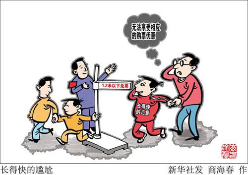 為人父母者,都希望自己的孩子長成“大高個兒”,但“大高個兒”也常常遇到煩惱,比如因為個子超過“限高”,很多兒童無法享受相應的購票優惠。長得快的兒童也是兒童,基于身高制定的兒童優惠標準能不能與時俱進,讓“個兒大”的孩子也能享受針對兒童的優惠政策?