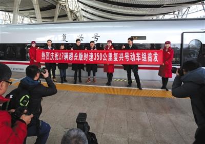 新圖配新車,昨日17輛超長編組“復興號”動車組從北京南站首發,開往上海虹橋站。超長版“復興號”由于增加了一節車廂,總長度達到了440米,比現在主力車型的8輛編組“復興號”長出了230米,運力得到極大提升。