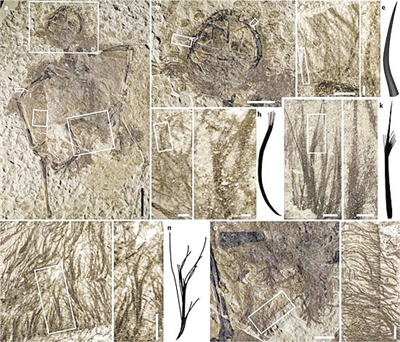 本次研究的蛙嘴龍標本及4種毛發