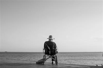 1月15日,海南三亞的一處海灘上,一名老人正坐在輪椅上看海景。 本報記者王偉偉 攝