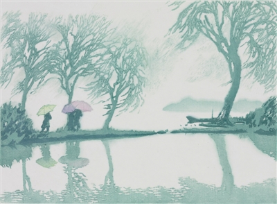 浙江美術館藏陸放版畫《西湖春雨》。