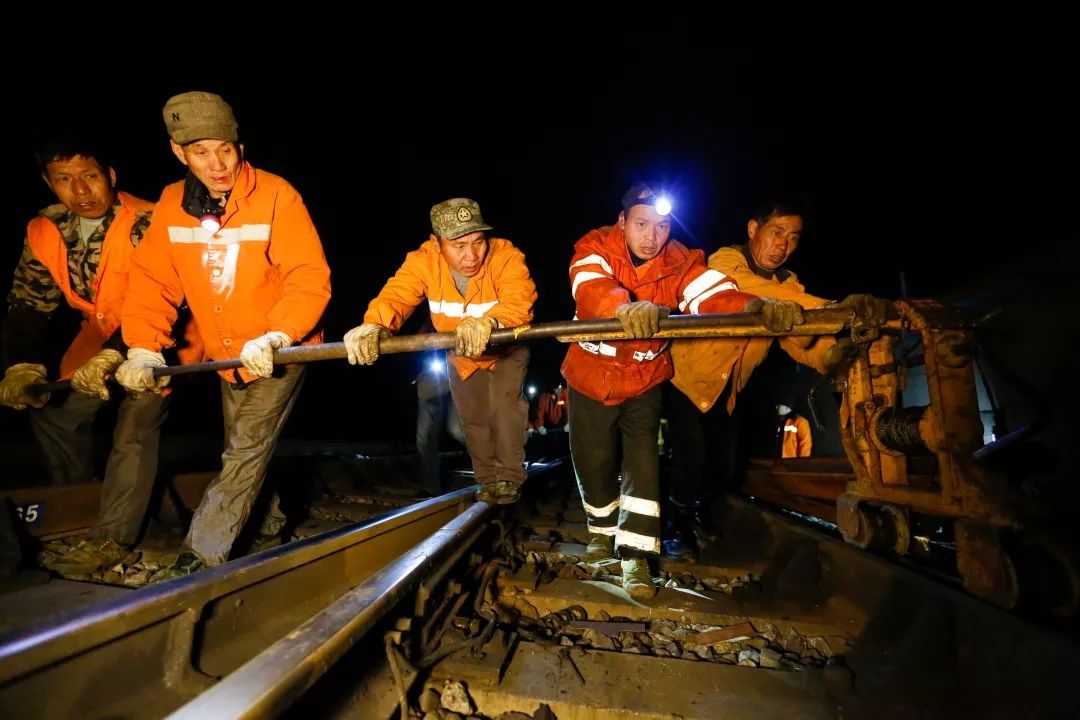 2019-01-25,江西南昌。凌晨兩點,中國鐵路南昌局集團有限公司南昌工務段的線路工們準備檢修線路,護航春運安全。作者:德權