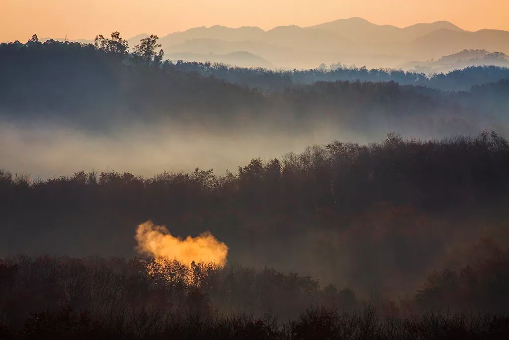 2019-01-26,海南保亭縣。初春的山區里,一道炊煙從山間攀緣而上,伴著晨光升起。作者:八戒