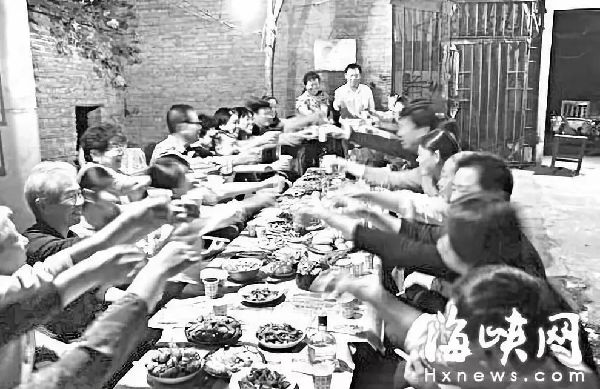 湖北省建始縣花坪鄉(xiāng)張家槽村的一戶家庭圍坐一起吃團(tuán)圓飯。新華社發(fā)(周阿寒 攝)