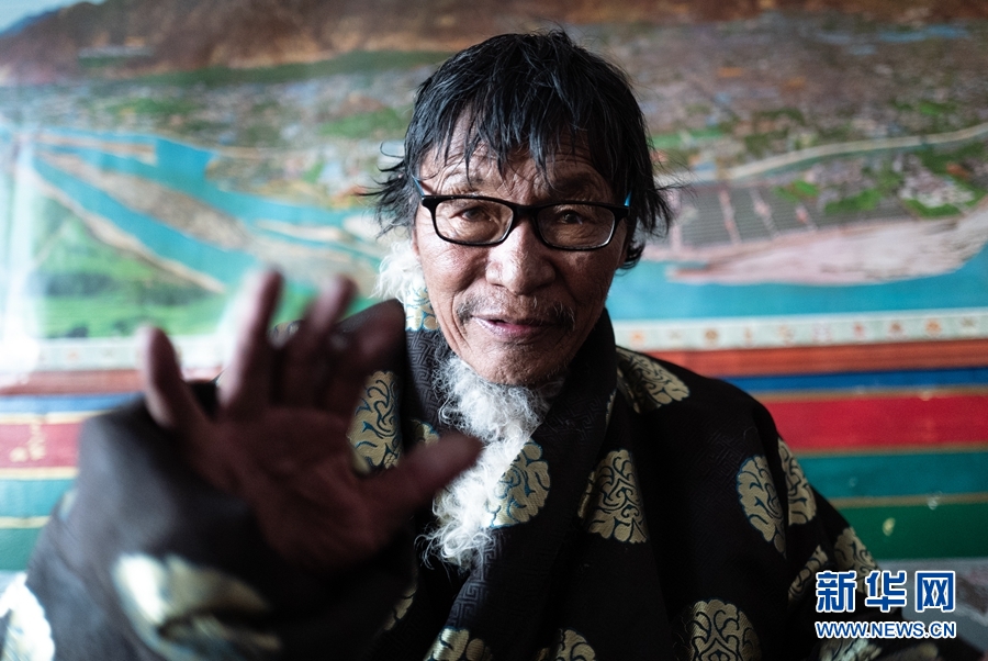 現年77歲的白瑪老人講述當年的情況,43年前,為尋找更好的草場、更好的生活,白瑪老人從那曲地區申扎縣,“無畏”地走進了雙湖。自1974年,從申扎縣嘎措鄉到雙湖嘎措鄉,老人擔任鄉黨委書記一直到2002年(1月31日攝)。新華社記者 普布扎西 攝