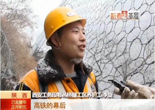 掃山小組 李旋:高鐵的幕后,還有好多像我們這樣(默默無(wú)聞)的人,看著這一條(西成高鐵)線,源源(不斷)地輸送著旅客,春節(jié)一趟接著一趟,其實(shí)想想這背后也有我的一份功勞。