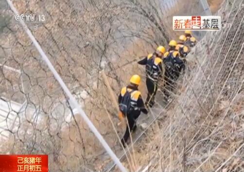 將近90度的陡坡,完全沒(méi)有路,腳下踩著防護(hù)網(wǎng),手上也緊緊抓住防護(hù)網(wǎng),單國(guó)峰帶著大家,就這樣一步一步挪到隧道口上方。在一處凸起的大石頭上,單國(guó)峰發(fā)現(xiàn)有隱患。