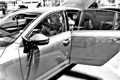2月9日深夜11點,由“雙閃車隊”和西站地區志愿者40多人組成的“藍絲帶”愛心服務車隊在西站停車場集結。23時15分,西站負二層出租車調度站等待出租車的旅客排起了長隊。盡管不停有保點的出租車前來支援,但和旅客的數量相比仍然相差懸殊。