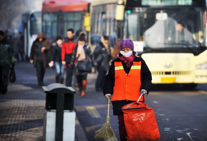 大學生“爭搶”事業編制環衛工,一名研究生學歷的環衛工人在巡街保潔 王建威 攝