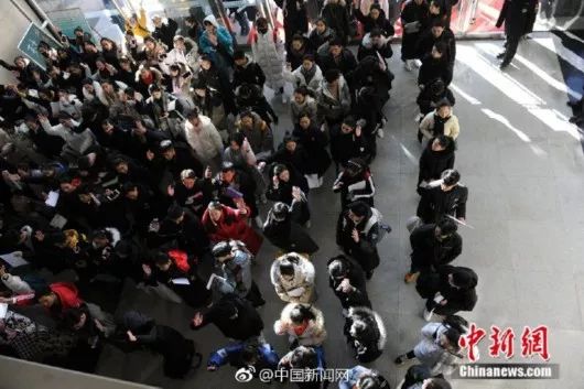 2月13日,北京東棉花胡同里,考生排隊(duì)等待參加中央戲劇學(xué)院招生專業(yè)考試。逾6.7萬人次報考,為歷年最高。