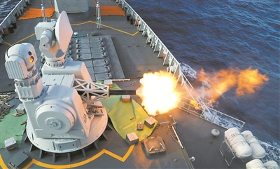 合肥艦副炮對(duì)來(lái)襲目標(biāo)實(shí)施打擊。