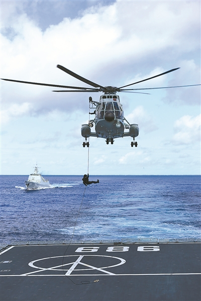 特戰(zhàn)隊(duì)員從直升機(jī)上滑降。