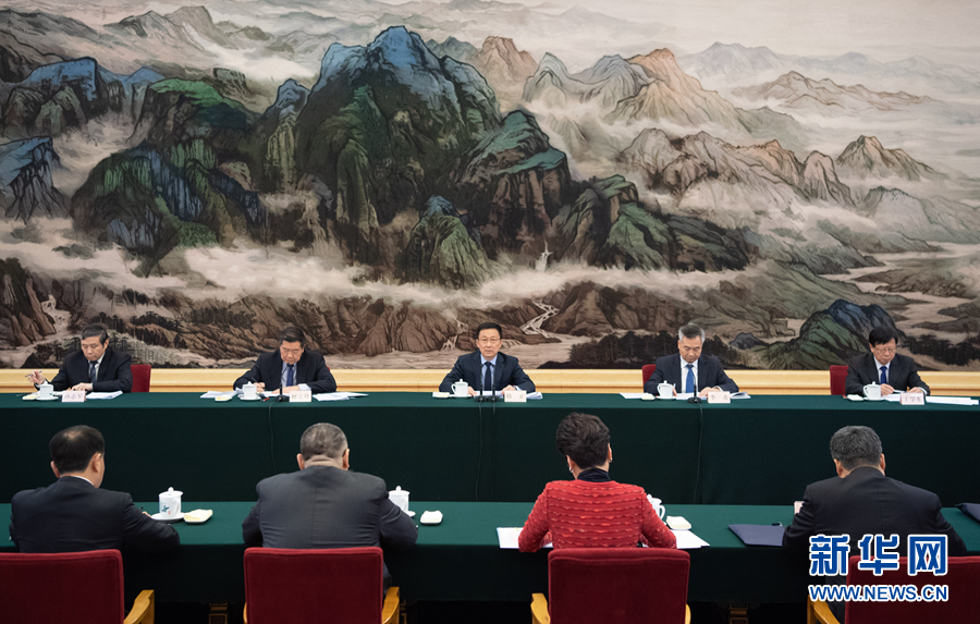 3月1日,中共中央政治局常委、國務院副總理、粵港澳大灣區建設領導小組組長韓正在北京人民大會堂主持召開粵港澳大灣區建設領導小組會議。 新華社記者 申宏 攝