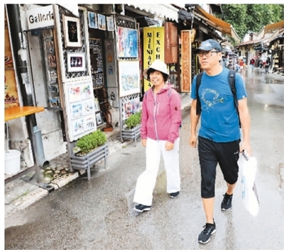 兩名中國游客在波黑薩拉熱窩老城區(qū)游覽。新華社發(fā) 哈里斯·梅米亞攝