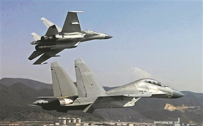西部戰(zhàn)區(qū)空軍航空兵某旅殲-16戰(zhàn)機低空訓練。(特約記者 劉應華攝)