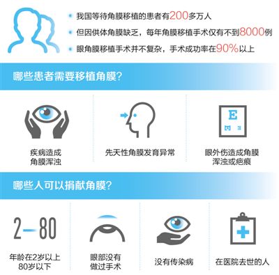 據統計,我國等待接受角膜移植的患者有200多萬,但因供體角膜缺乏,全國各大醫院每年完成的角膜移植手術僅有不到8000例。
