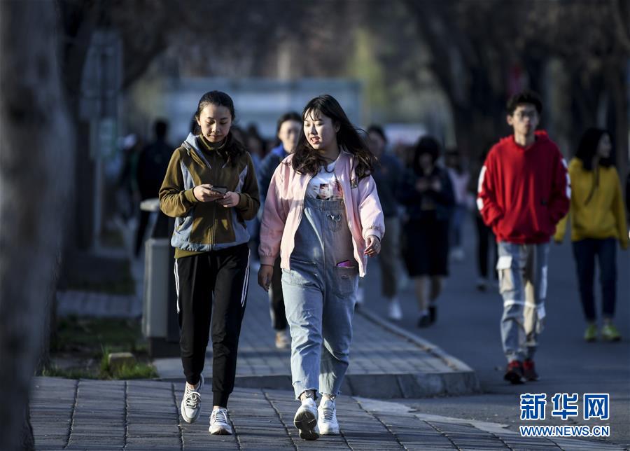 新疆石河子大學的學生走在校園內(4月10日攝)。新華社記者 王菲