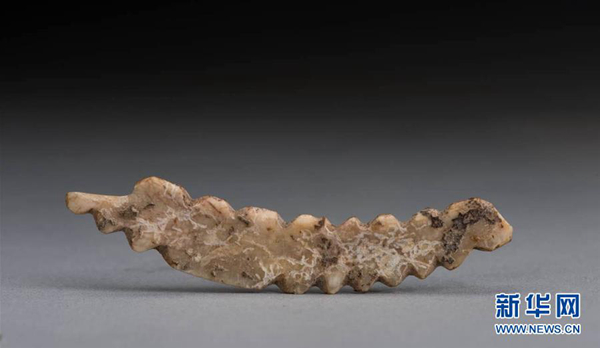 這是河南鞏義雙槐樹遺址出土的牙雕蠶(資料照片)。新華社發(鄭州市文物考古研究院提供)