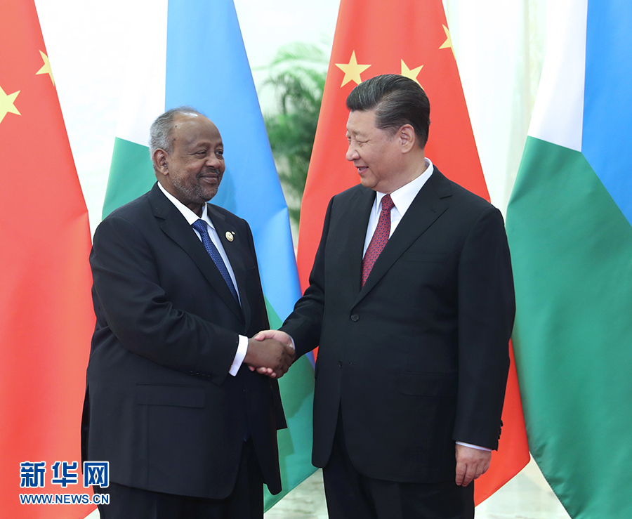 4月28日,國家主席習近平在北京人民大會堂會見吉布提總統蓋萊。 新華社記者 姚大偉 攝