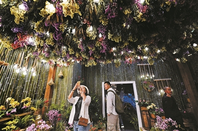 從北京世園會4號門進入,即可體驗“東線”游覽線路,涵蓋生活體驗館、世界園藝展示區、國際館等主要場館和景區。昨天下午,北青報記者來到位于北京世園會東北部區域的生活體驗館。剛一進門,眼前就浮現出一條“之”字形花田步道,參觀者可以自一樓沿坡道徐徐漫步至二樓,欣賞沿途不同主題的植物。步道兩側栽種著水仙、蝴蝶蘭、菊花等植物,還散落著不少用生活用品裝點的園藝小品,如小鞋子、小草帽、小木箱等。“我們通過這樣的布景方式,既體現綠色環保的生活理念,也是力求將園藝融入生活,體現‘愛園藝、愛生活’的美好主題。”生活體驗館館長助理樊川介紹說。