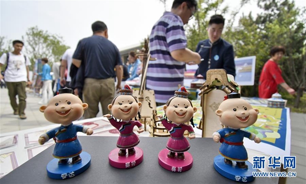 在北京世園會“內蒙古日”文化展示活動上展出的呼倫貝爾少數民族文創產品(5月17日攝)。新華社記者 李欣 攝