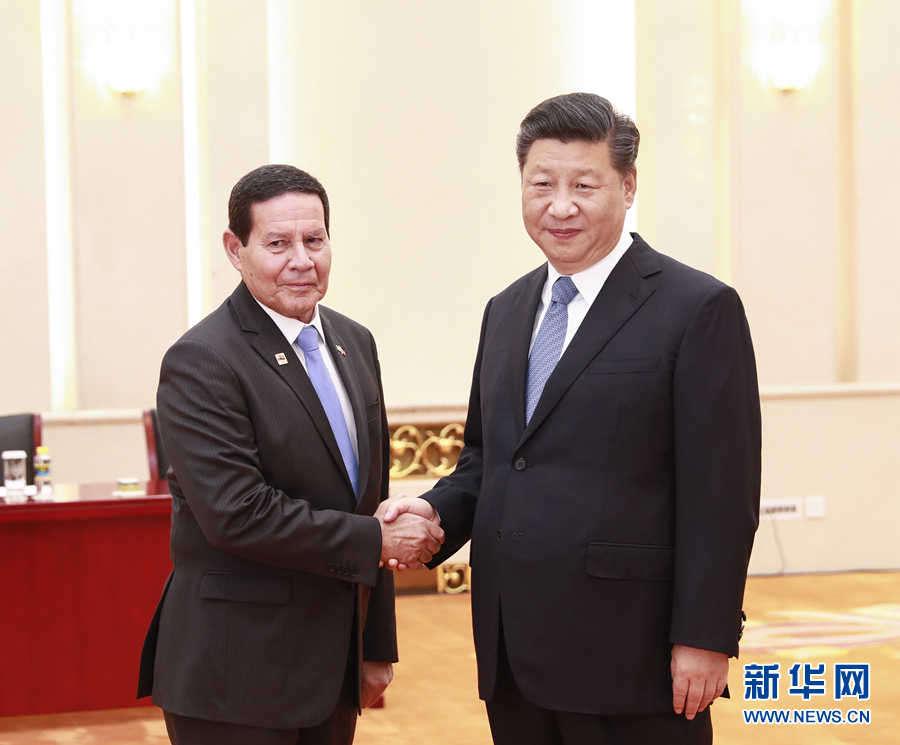 5月24日,國家主席習近平在北京人民大會堂會見巴西副總統莫朗。新華社記者 龐興雷 攝