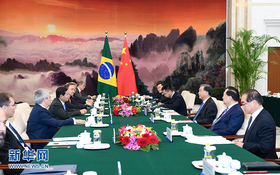 5月24日,全國政協主席汪洋在北京人民大會堂會見巴西副總統莫朗。新華社記者 張領 攝