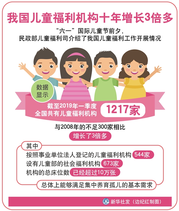 新華社北京5月31日電(記者羅爭光)“六一”國際兒童節(jié)前夕,民政部兒童福利司介紹了我國兒童福利工作開展情況。數(shù)據(jù)顯示,截至今年一季度,全國共有兒童福利機構(gòu)1217家,與2008年的不足300家相比,增長了3倍多。