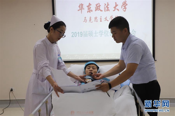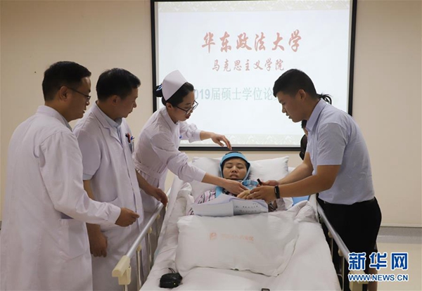 得知程艷芳的想法后,華東政法大學馬克思主義學院的老師們很受觸動,“答辯是她親自提出來的,說希望能和同學們一起畢業,我們都覺得這個孩子特別堅強?!比A東政法大學教授林凌表示,這是他記憶中第一個躺在病床上完成論文答辯的學生。