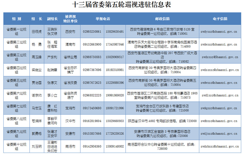 根據(jù)安排,省委巡視組將在被巡視地區(qū)、單位工作1個月左右。巡視期間設(shè)值班電話、郵政信箱、電子郵箱等,巡視組受理信訪時間截止到2019年6月30日。省紀(jì)委監(jiān)委信訪舉報受理電話(029—12388)、信箱(西安市雁塔區(qū)雁塔路南段十號陜西省紀(jì)委監(jiān)委信訪室)和網(wǎng)上舉報窗口(http://shaanxi.12388.gov.cn),同步受理涉及秦嶺生態(tài)環(huán)境保護(hù)的信訪舉報。根據(jù)秦嶺生態(tài)環(huán)境保護(hù)專項巡視工作要求,省委巡視組主要受理反映被巡視地區(qū)和單位秦嶺生態(tài)環(huán)境保護(hù)方面的問題和線索。對不屬于這次專項巡視受理范圍的信訪問題反映,將按規(guī)定轉(zhuǎn)交被巡視地區(qū)或單位和有關(guān)部門認(rèn)真處理。