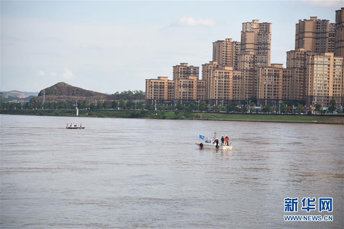 6月14日,搜救船只在東江大橋下游搜尋下落不明人員。新華社記者 田建川 攝