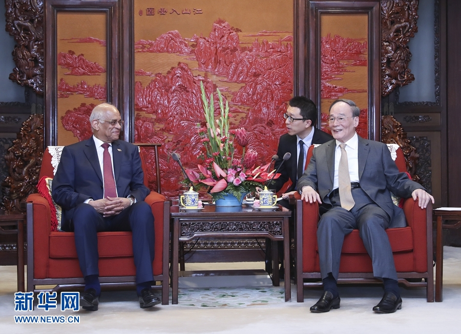 6月19日,國家副主席王岐山在北京中南海紫光閣會見埃及議長阿里。 新華社記者 姚大偉 攝