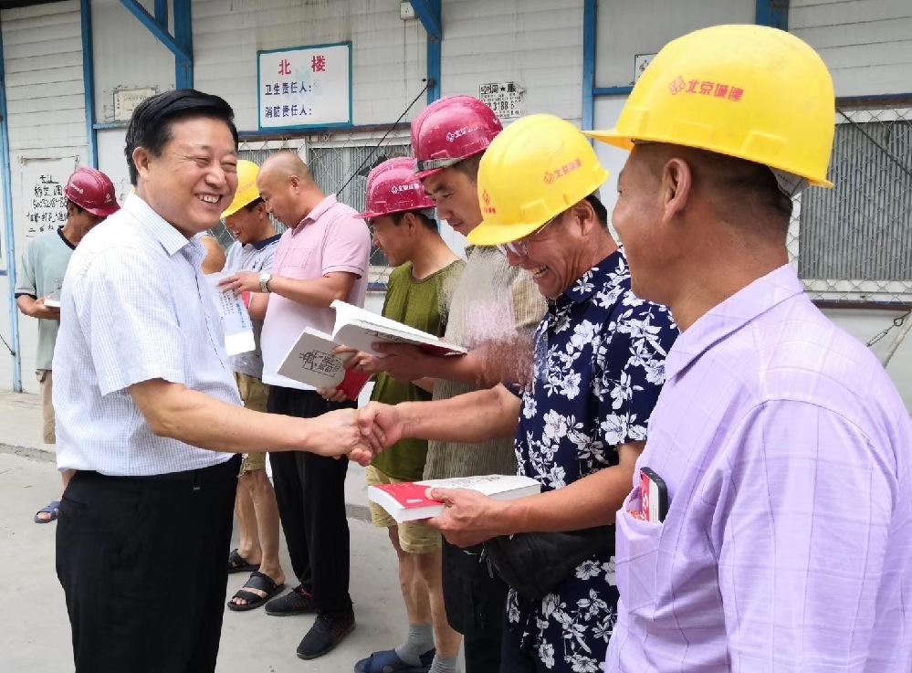 朱時華向農民工贈書。(圖片由朱時華提供)