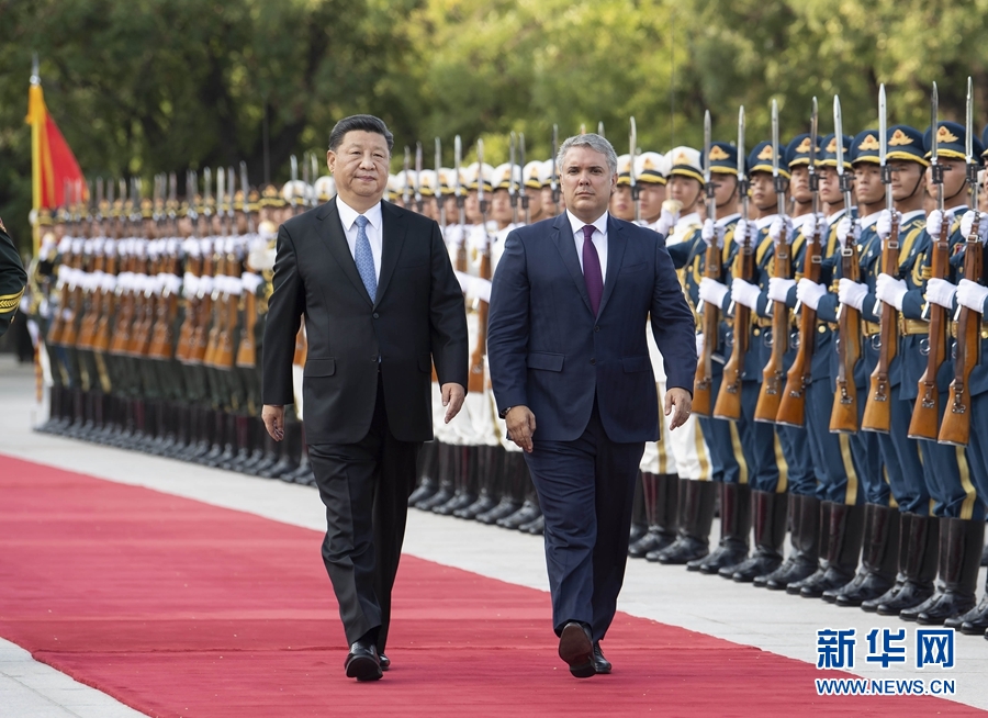 習(xí)近平指出,40年前,哥倫比亞政府審時度勢,作出同中國建交的決定,總統(tǒng)先生的父親是當(dāng)時政府成員,堅(jiān)定擁護(hù)這一決策,見證了兩國關(guān)系起航時刻。今天中哥關(guān)系發(fā)展的接力棒傳到你和我手上。這次你專程訪華,以實(shí)際行動表明你積極致力于深化中哥傳統(tǒng)友好和互利合作,我對此高度贊賞。中方愿同哥方圍繞建交40周年這一重要節(jié)點(diǎn),共同規(guī)劃未來發(fā)展藍(lán)圖,推動中哥關(guān)系邁上新臺階。