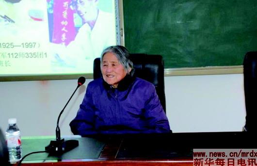 ▲這是李玉安的老伴在給學生講述李玉安的故事。 新華社發(fā)