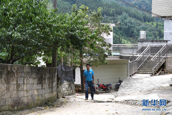 楊杰興在廣西樂業(yè)縣百坭村走訪(8月1日攝)。新華社記者 周華 攝