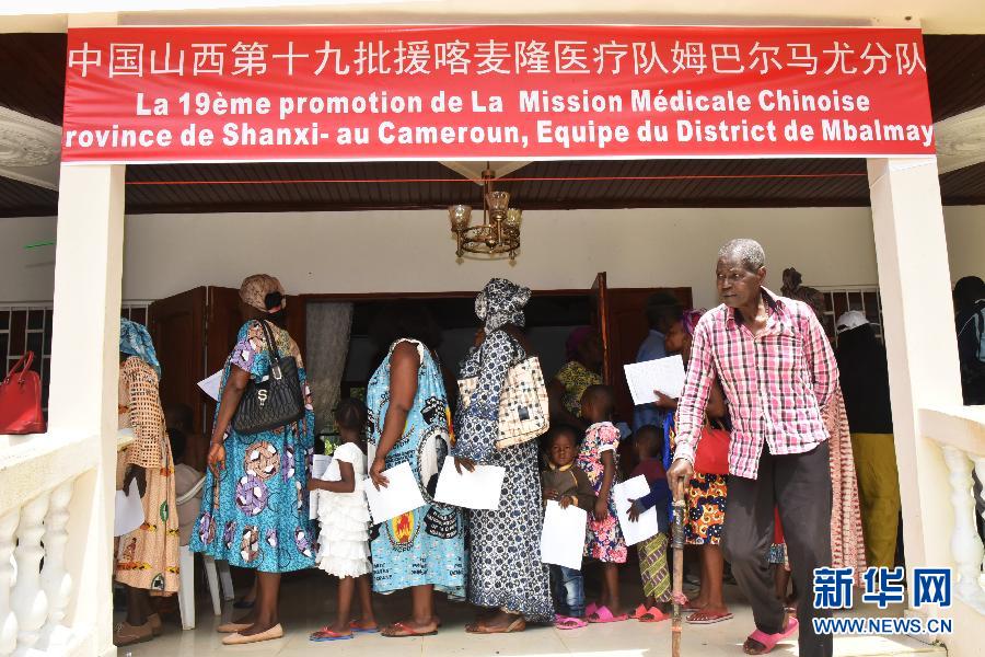 2019年8月3日,在喀麥隆姆巴爾馬尤,中國(guó)援喀麥隆醫(yī)療隊(duì)下鄉(xiāng)義診。 新華社發(fā)(讓·皮埃爾·科普索攝)