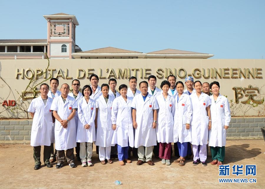 這是第23批北京安貞醫(yī)院援幾內(nèi)亞醫(yī)療隊(duì)在幾內(nèi)亞科納克里的中幾友好醫(yī)院前合影的資料照片。新華社發(fā)